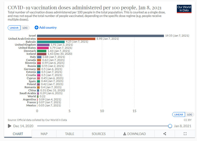 At the time of writing, the UK has administered at least one dose to nearly 2% of the population.