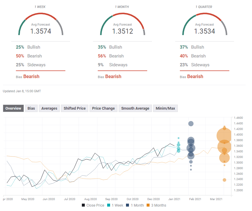 The FXStreet Forecast Poll is showing that experts are bearish on all timeframes – but all targets are above 1.35, a relatively minor full. It seems that the removal of Brexit risk has put a bottom on dovish expectations. Average targets have been upgraded in the past week.