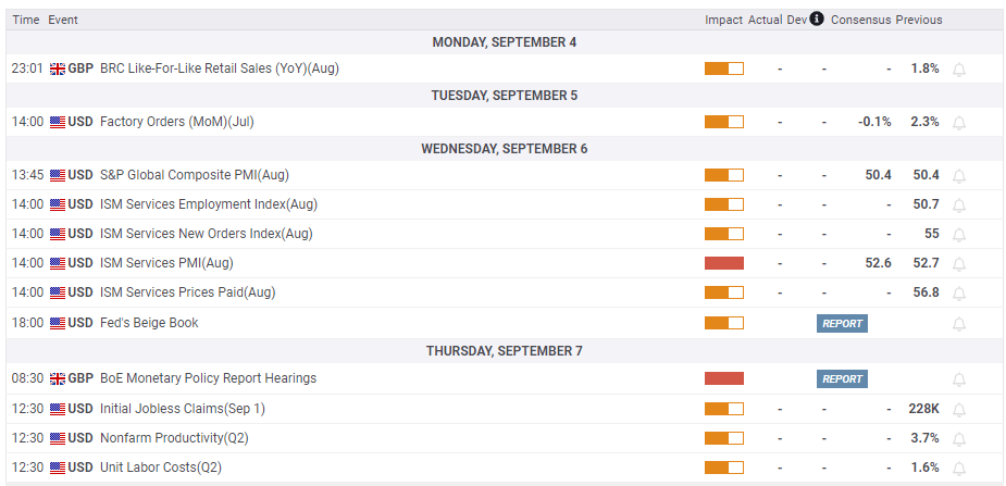 Tuesday will see the final Services PMI from the UK, followed by the US Factory Orders, which will likely have little impact on the GBP/USD. Earlier that day, China’s Caixin Services PMI will be released in the Asian session, which will potentially shape up risk trends for the rest of the day.