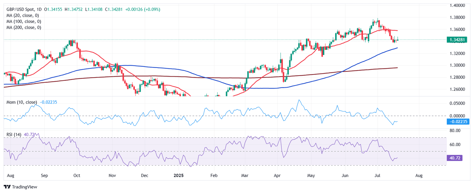 GBP/USD fell for three weeks in a row as risk aversion favored demand for the US Dollar (USD), while tepid United Kingdom (UK) data undermined demand for the Sterling Pound (GBP). The pair bottomed at 1.3365 mid-week, its lowest since May, recovering roughly 100 pips ahead of the weekly close.