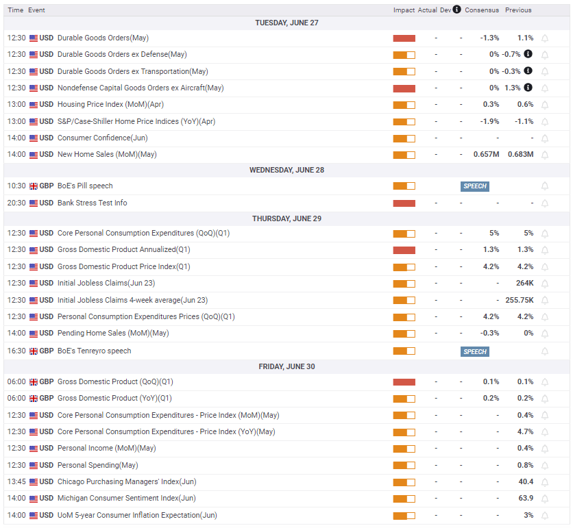 On Friday, UK Retail Sales data was a positive surprise with a 0.3% increase in May, against expectations of a 0.2% decline. The numbers show a still-resilient consumption. The flash PMI survey pointed to a downturn as it did in the Eurozone. The Manufacturing PMI dropped to 46.2 from 47.1 and the Services PMI to 53.7 from 55.2. The first glimpse at economic activity in June shows a deterioration as the readings were the slowest in three months. The slowdown was sharper than expected and shows the Manufacturing sector contracting and the Services sector growing at a slower pace. "June's flash PMI survey indicates that the UK economy has lost momentum again after a brief growth spurt in the spring and looks set to weaken further in the months ahead," explained Chris Williamson, Chief Economist at S&P Global Market Intelligence."