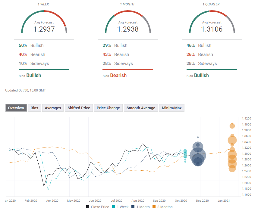 The FXStreet Forecast Poll is showing a short-term bounce, stability in the medium term, and then a rise in the long-term. Experts seem to be pointing to a moderately bullish response to the US elections and a more significant one after Brexit – perhaps assuming the EU and the UK strike a deal. The average targets are little changed from last week.
