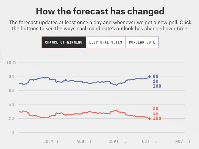 According to Nate Silver's FiveThirtyEight, the challenger has an 80% chance of winning, the highest since the model was launched: