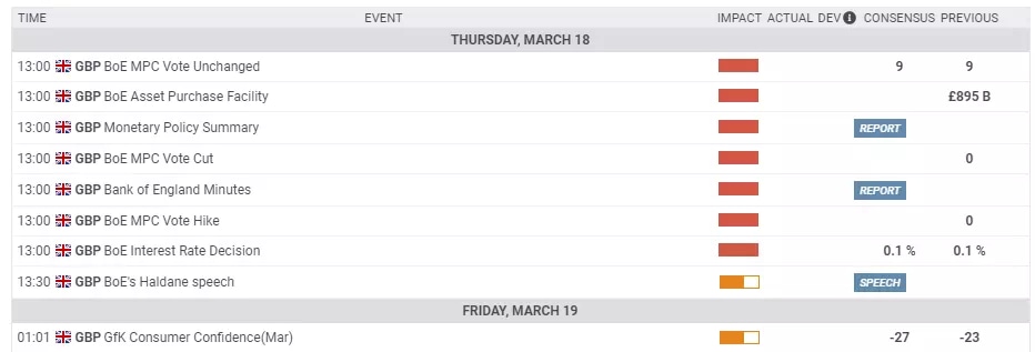 Here is the list of UK events from the FXStreet calendar: