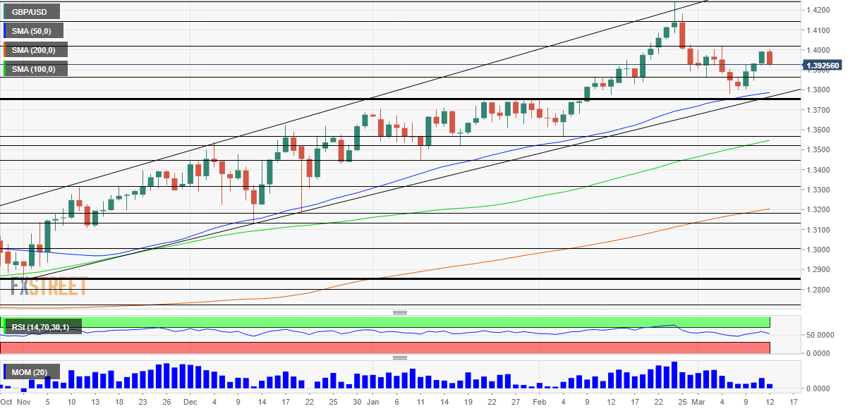 - GBP/USD's daily chart is showing bulls remain in the lead.