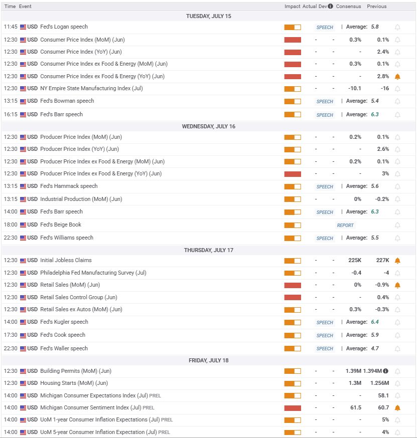 Besides data publications, all eyes will remain on the speeches from Fed policymakers as the US central bank enters the ‘blackout period’ on Saturday before its July 29-30 monetary policy meeting.