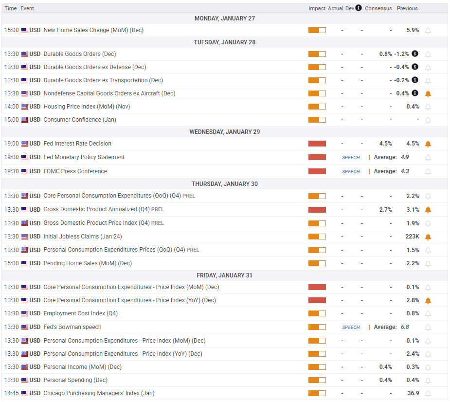 Earlier in the week, Trump announced plans to impose tariffs on imports from Canada, Mexico, China, and the European Union, to be implemented on February 1. However, no further clarity has been provided, leaving investors losing confidence in the US currency. The 47th US President also announced that OpenAI, SoftBank, and Oracle will form a joint venture called Stargate and invest up to $500 billion in artificial intelligence (AI). This announcement boosted the tech stocks globally, diminishing the USD’s appeal as a haven.