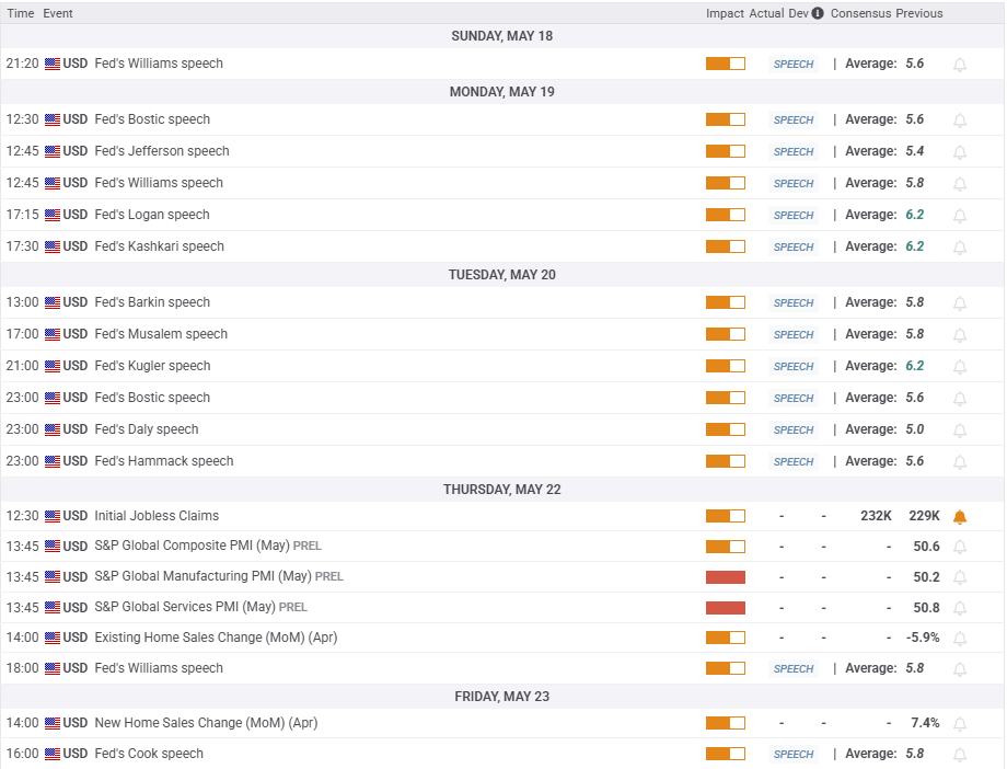 On Friday, the data from the US showed that the University of Michigan's Consumer Sentiment Index declined to 50.8 in May from 52.2 in April. The one-year Consumer Inflation Expectation component of the survey rose to 7.3% from 6.5%, allowing the USD to hold its ground heading into the weekend and causing GBP/USD to stretch lower.