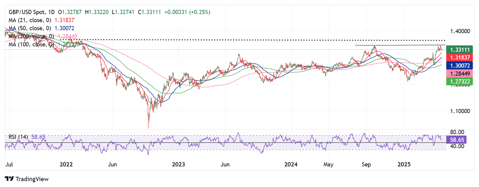 Amid a Golden Cross and a bullish 14-day Relative Strength Index (RSI) on the daily chart, risks remain skewed to the upside for the GBP/USD pair in the short term.
