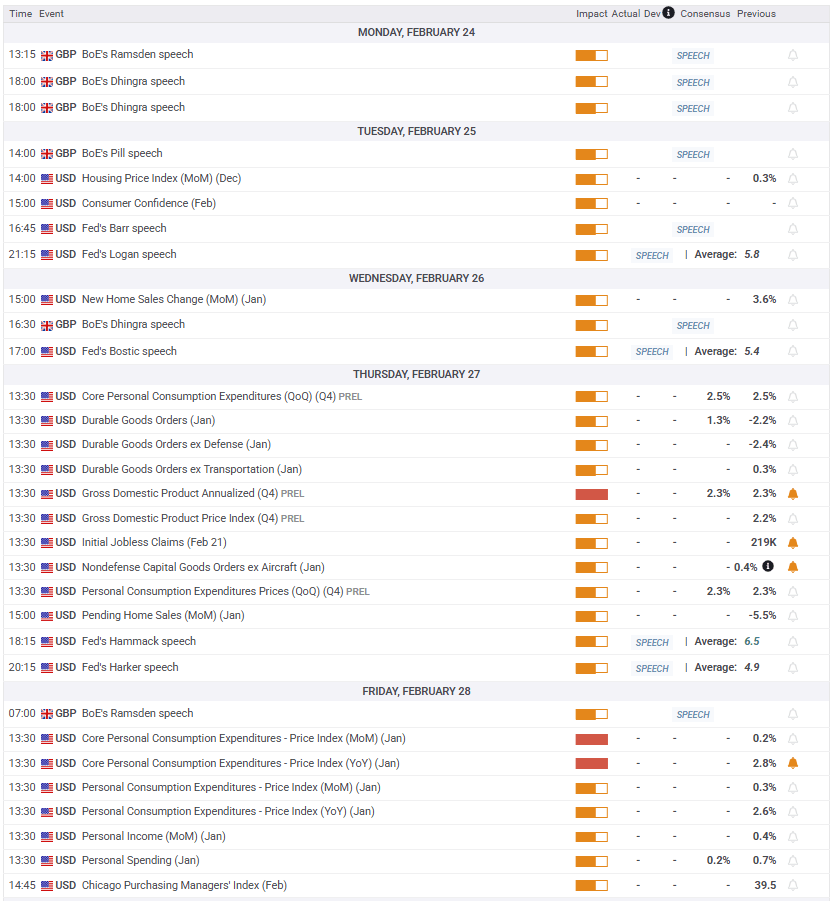 The January US Personal Consumption Expenditures (PCE) Price Index will stand out on Friday. The pair traders will watch out for the US Q4 Gross Domestic Product (GDP) revision and BoE policymaker Dave Ramsden’s speech for further directional impetus.