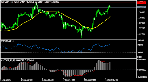 The GBPUSD pair maintained the bullish trend after the latest UK economic numbers. The pair rose to 1.3885, which was the highest level since September 6. On the hourly chart, the pair is close to the important resistance level at 1.3890. It remains slightly above the short and longer moving averages while the MACD is above the neutral line. The Relative Strength Index (RSI) rose above the overbought level. Therefore, a bullish breakout will be confirmed if the price moves above this resistance level.