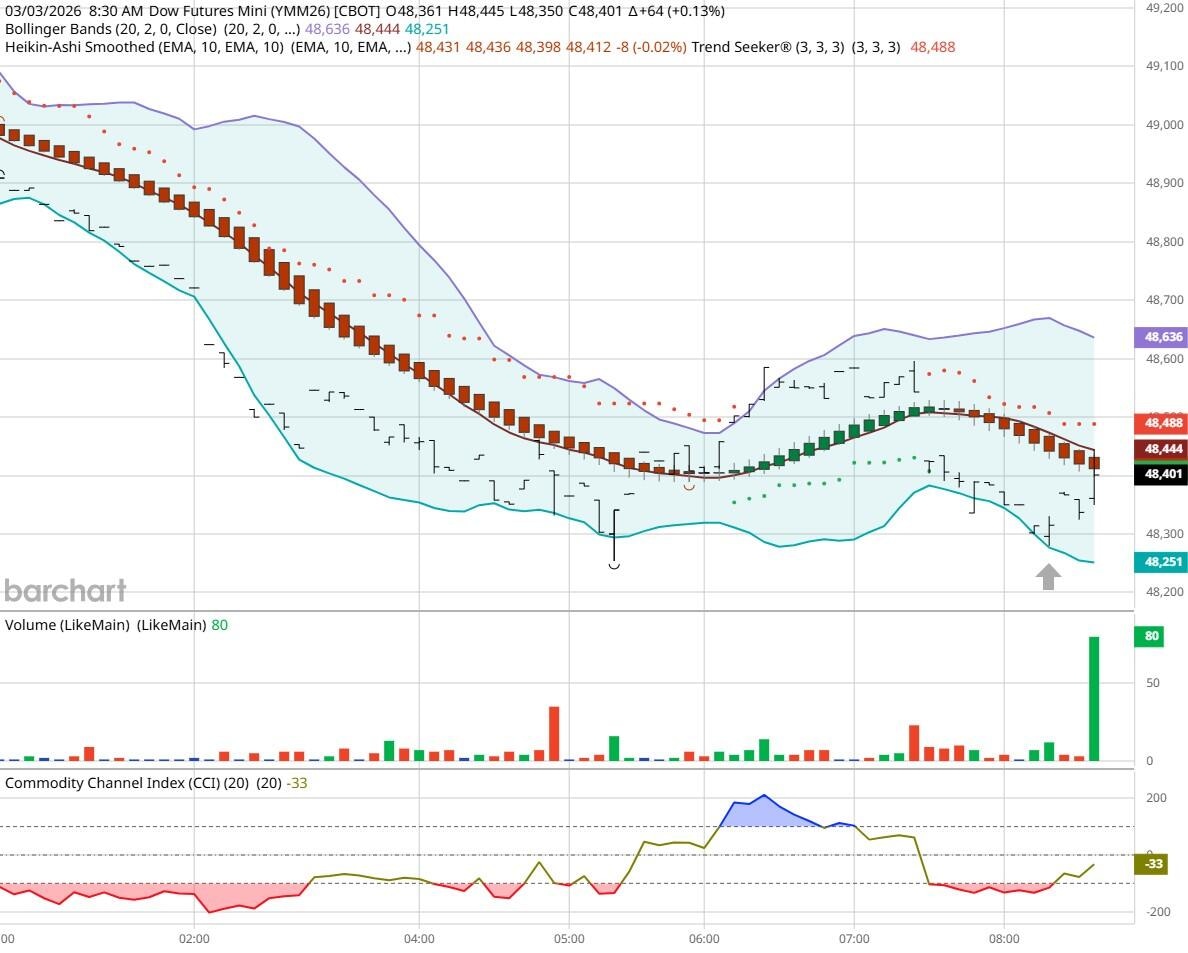 Yesterday the ZT dived Lower at around 8:30 AM EST with no real news pending. The Dow climbed Higher at around the same time. Look at the charts below and you'll see a pattern for both assets. The ZT dived Lower at around 8:30 AM EST and the Dow climbed Higher at around the same time. These charts represent the newest version of Bar Charts, and I've changed the timeframe to a 15-minute chart to display better. This represented a Short opportunity on the 2-year note, as a trader you could have netted about a dozen plus ticks per contract on this trade. Each tick is worth $6.25. Please note: the front month for the ZT is now Jun '26. I've changed the format to filled Candlesticks (not hollow) such that it may be more apparent and visible.