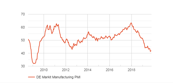 Germany’s export economy has been buffeted by the decline in global activity abetted if not prompted by the twin disturbances of the US China trade war and the still unknown economic consequences of the British exit from the European Union.