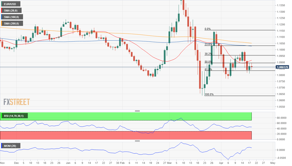 The EUR/USD pair has been trading below the critical 1.1000 figure since late March, yet meeting buyers on attempts to breach the 1.0800 threshold to the downside. Whatever the outcome of the report, those levels are expected to hold, although a large deviation could put the pair closer to one of those extremes. Then, it will be the turn of the greenback to determine whether or not the pair could be able to break it.