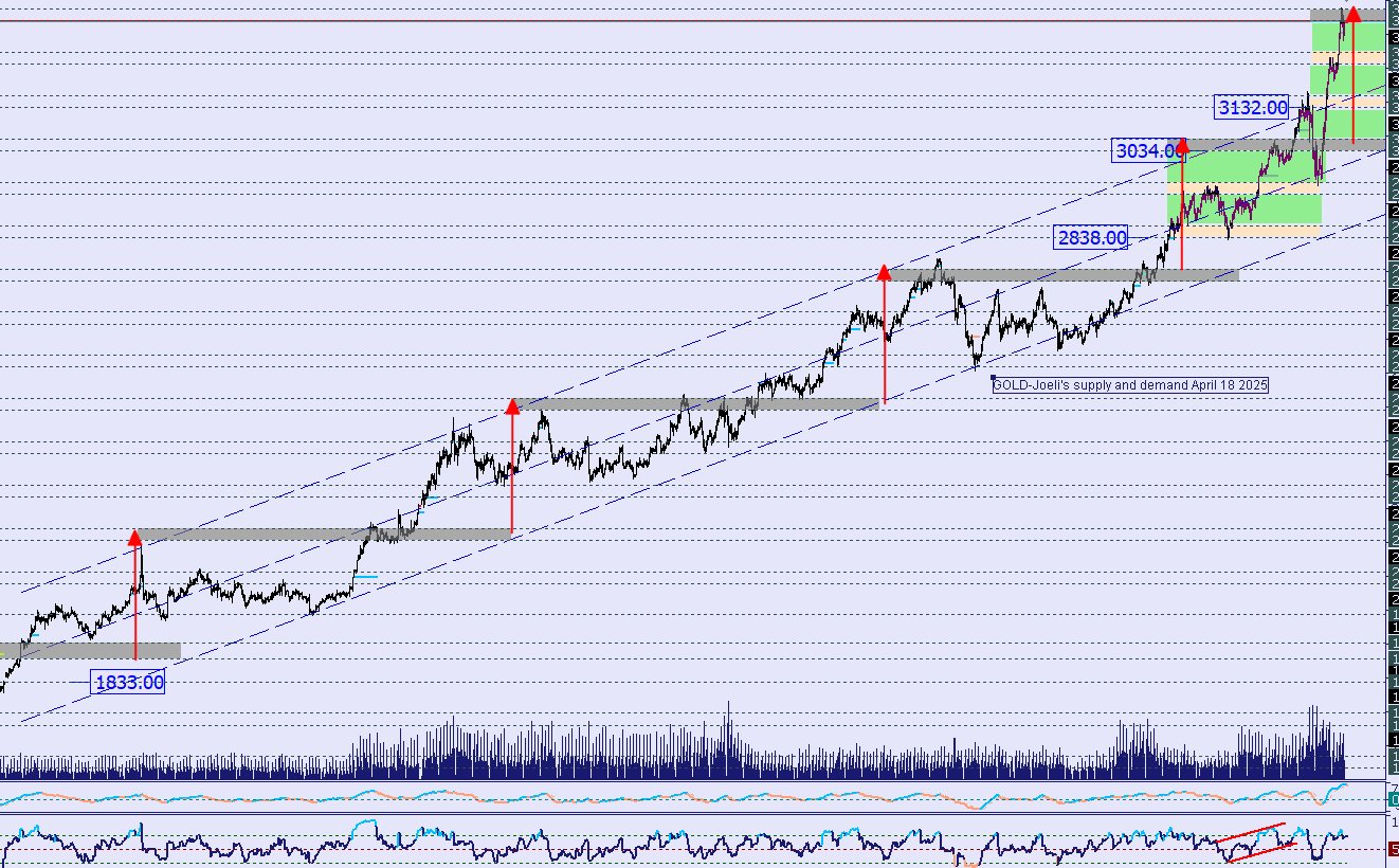 Gold has broken out of a two-year bullish channel and completed its fifth price cycle in the golden supercycle structure. Current supports are at 3290, 3256, and 3230. Targets are 3620 and 3650.