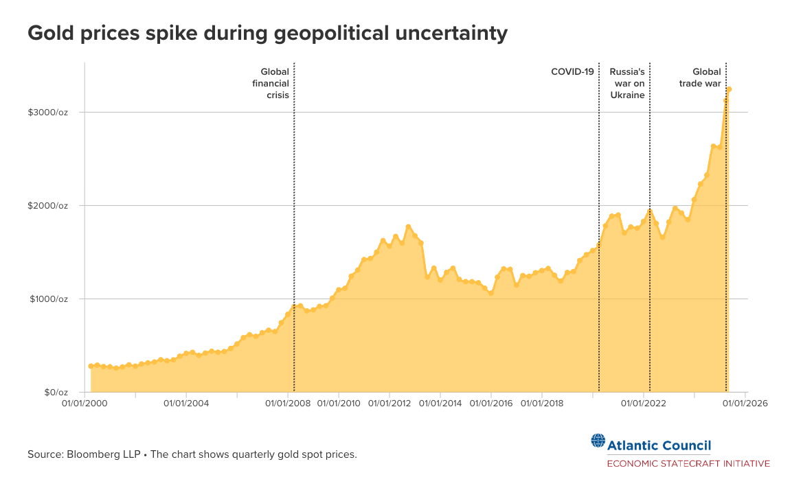 “The United States has the power to indirectly reduce gold prices and encourage the adoption of dollar-backed assets by returning to being the provider of stability in the global economy. That can be achieved by dialing down the use of tariffs and other economic measures that could cause governments and private actors to turn to gold.”