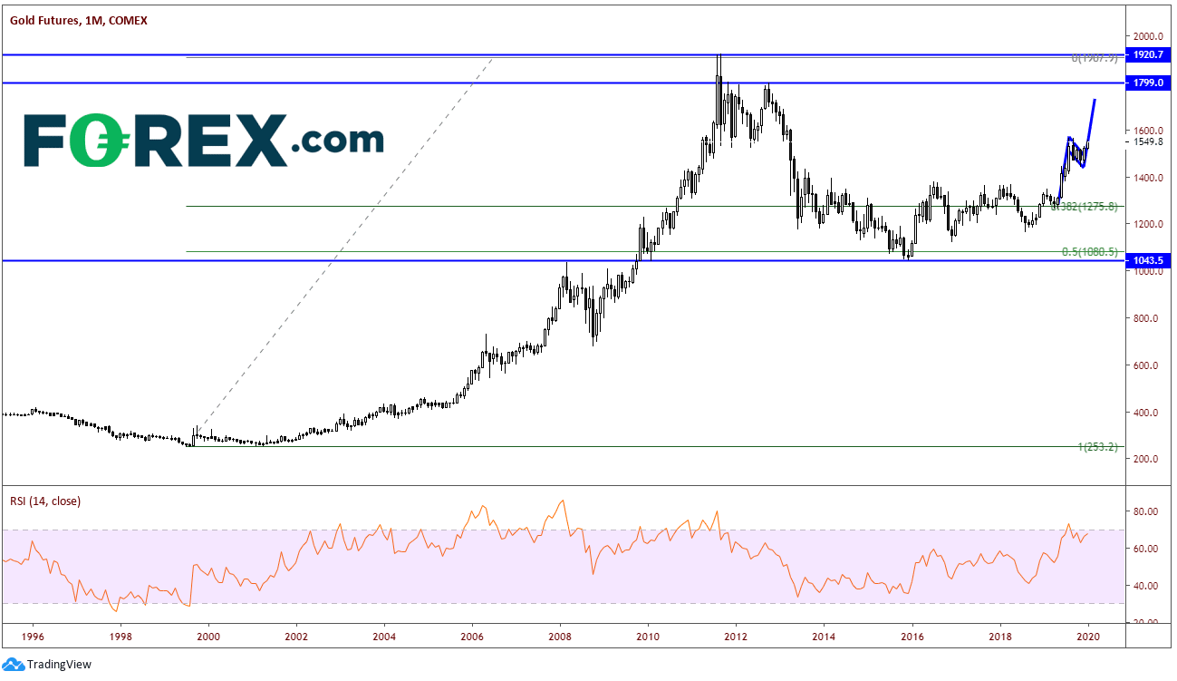What has emerged since May 2019 has been one of the most beautiful things I have ever seen: A TEXTBOOK PENNANT FORMATION THAT IS IN THE PROCESS OF BREAKING OUT! Price rose from $1275 to $1567 between June and September of 2019. It then pulled back, minimally, to the 38.2% Fibonacci retracement level near $1455, forming the pennant. On December 23rd, price broke higher and hasn’t looked back since.