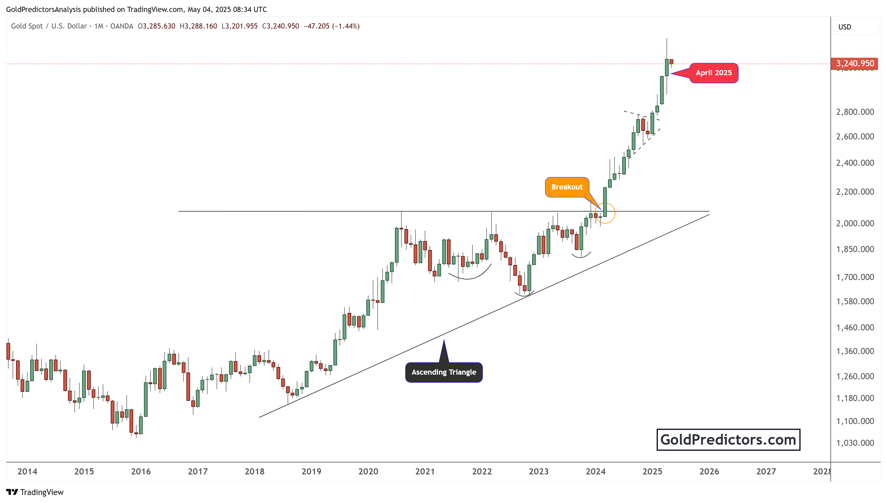 Gold price breaks out of decade-long triangle pattern toward record highs