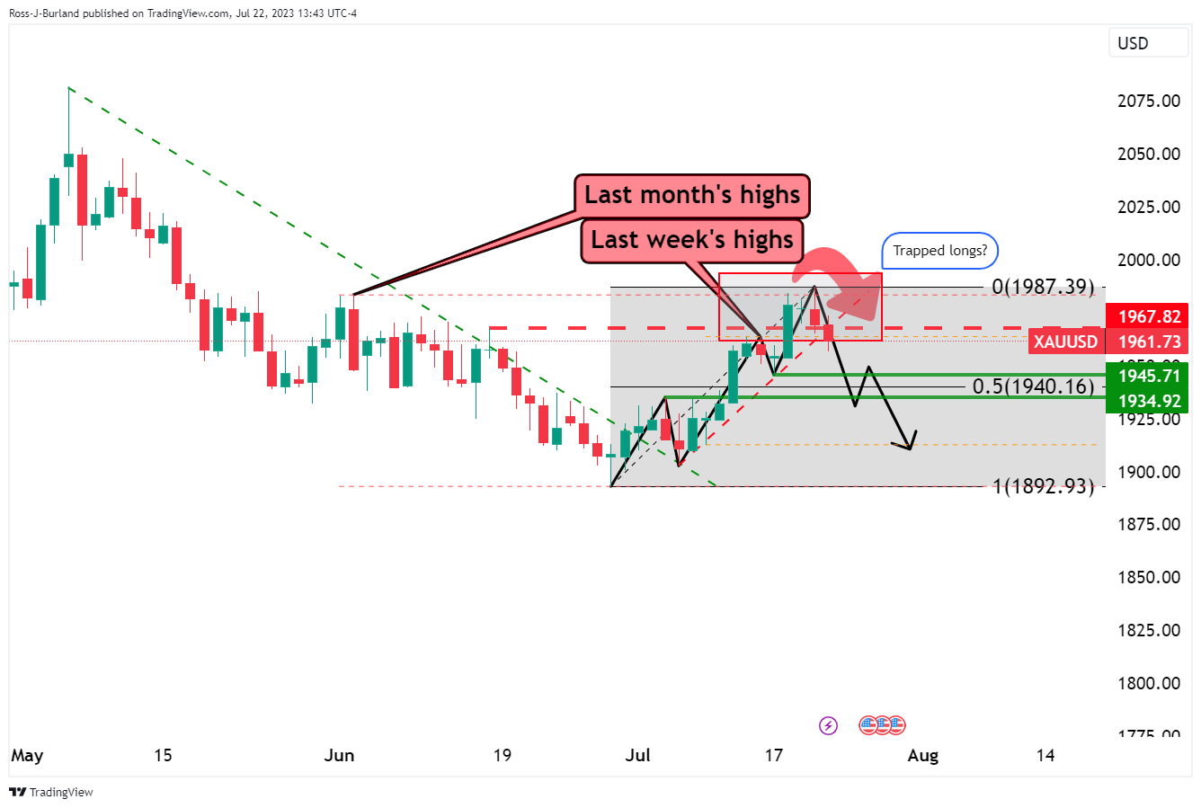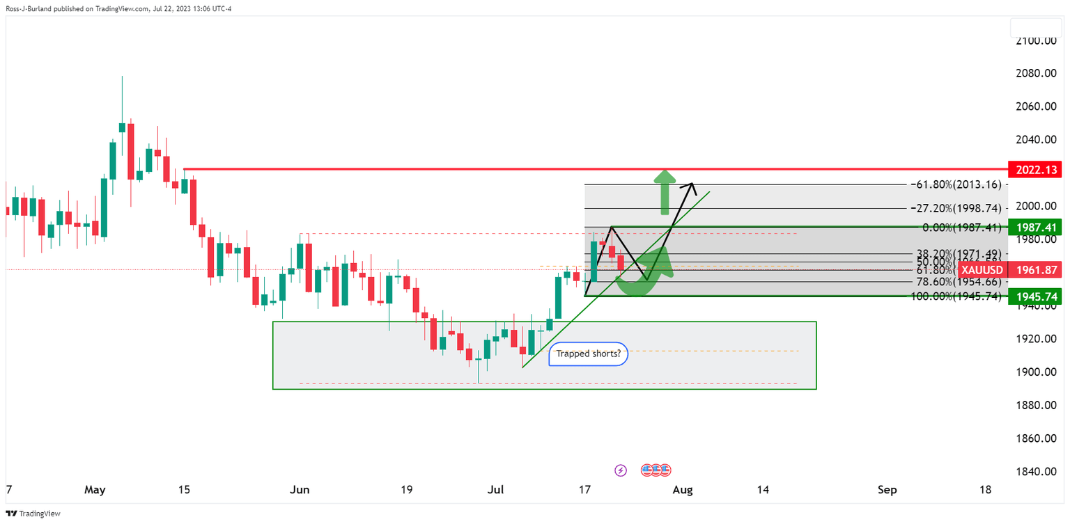 The price broke last week's and month's highs but is failing to convince as the bears move in. the correction could be headed towards a test of the recent structural lows near $1,945: