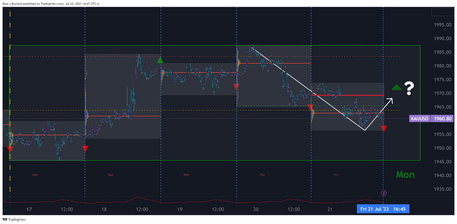 A break above $1,964 would create a market structure shift, MSS, and add conviction to the bullish bias for next week's opening.