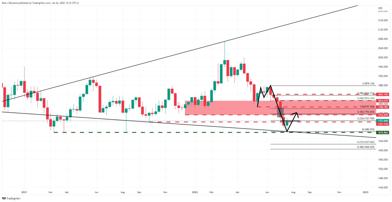Gold, Chart of the Week: XAU/USD bulls are moving in trying to catch the falling knife