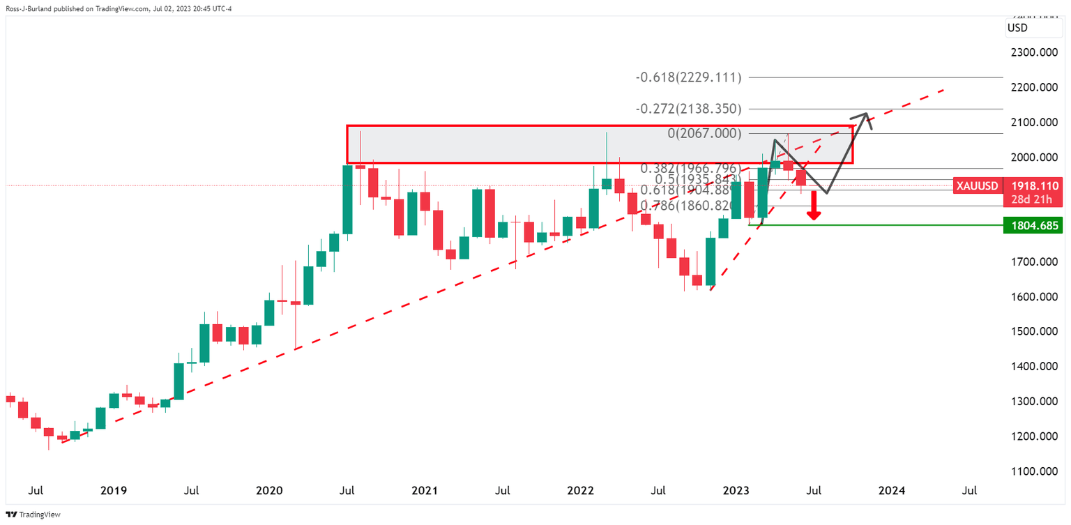 Gold, Chart of the Week: XAU/USD bulls eye $1,950 but bears stay in charge