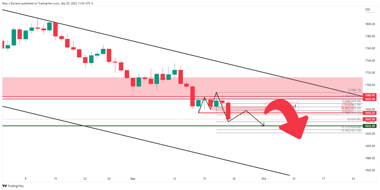 On the other hand, the hourly chart has already seen a correction and if the bears commit to below 1,650, then the downside could play out a lot sooner, leaving the opening sessions as prospective bearish plays to start the week off.