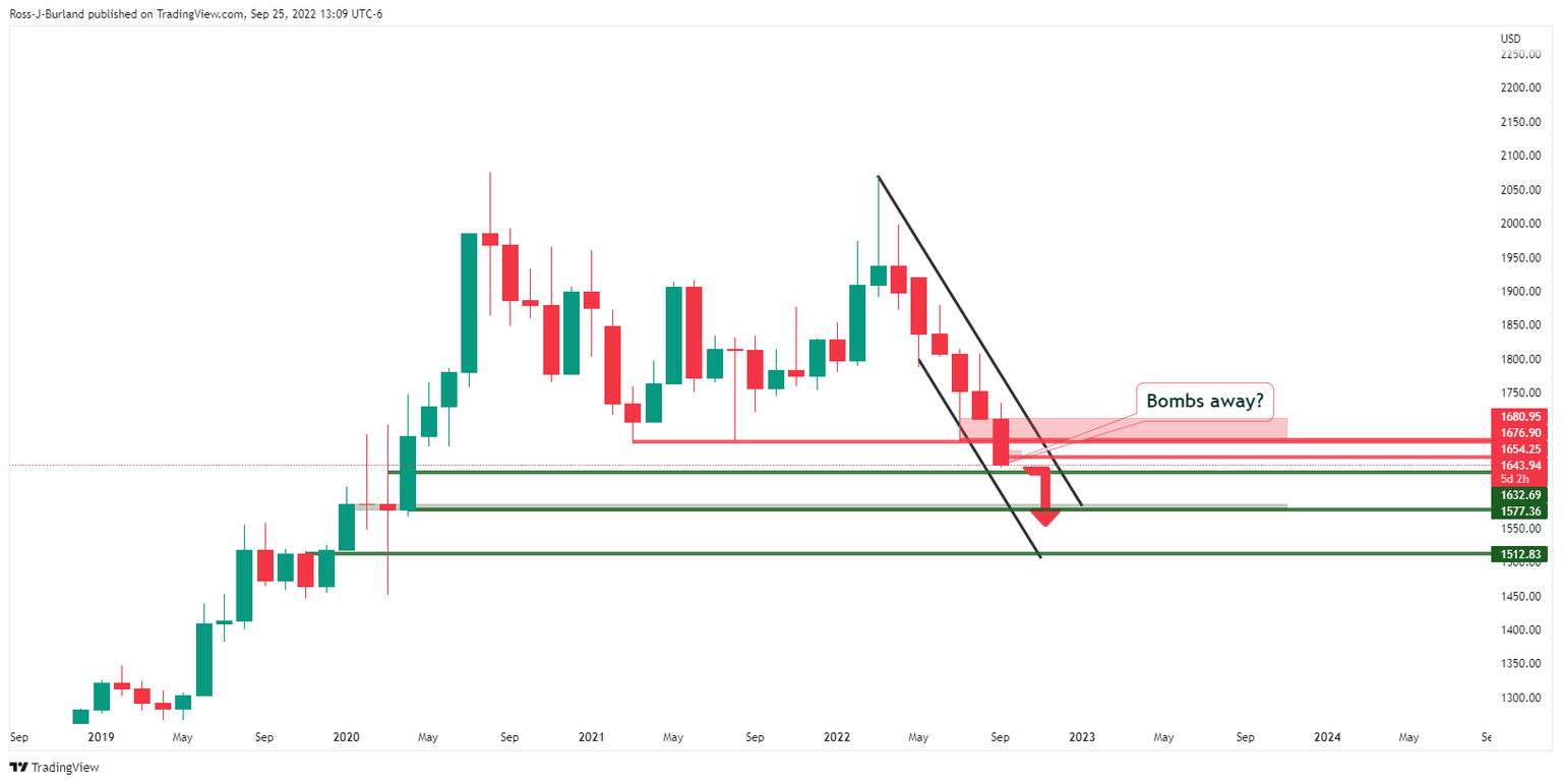 Gold, Chart of the Week: XAU/USD thrown to the bears at the edge of the abyss
