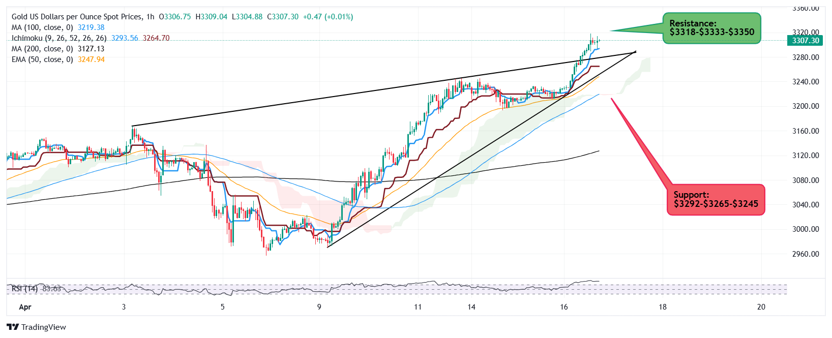 Gold continues to attract buyers as tariff war escalations drive safe haven demand for the precious metal triggering strong bullish rally to set a new racord high at $3318