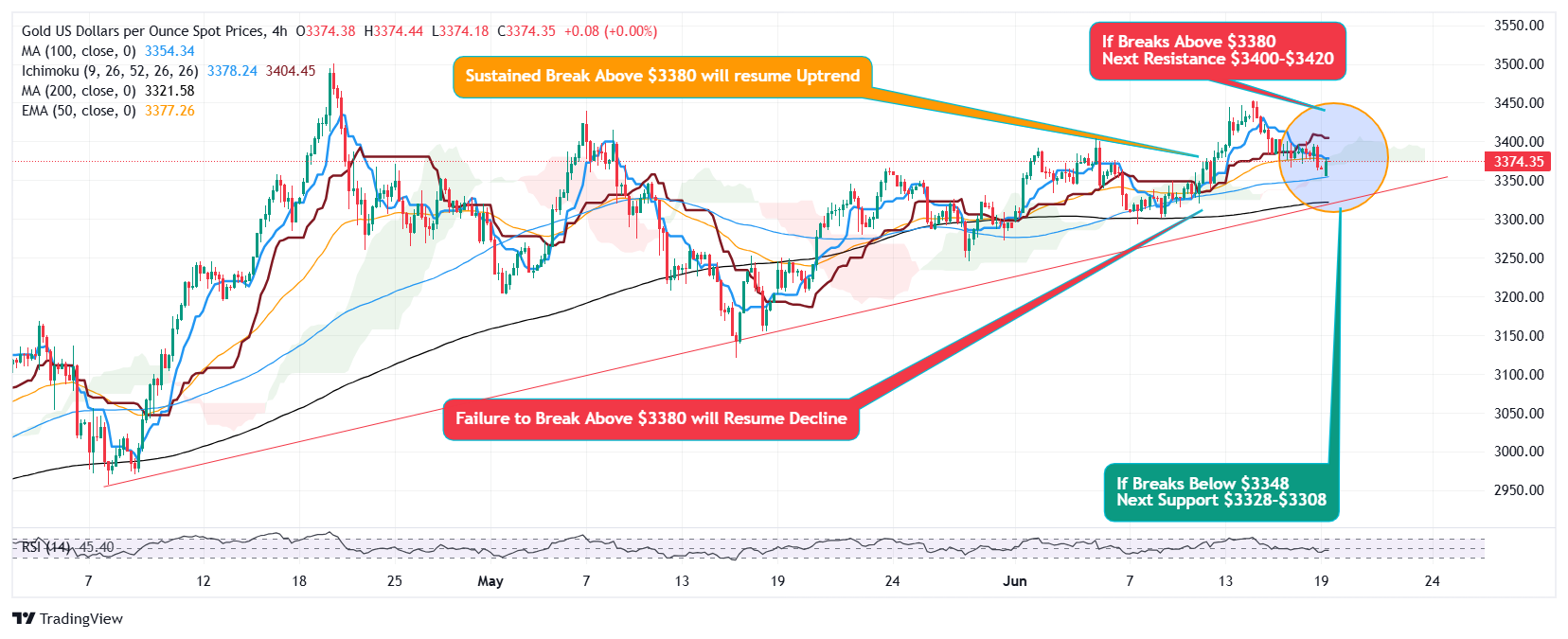 - Break Below $3348 to Extend decline to $3328-$3308.