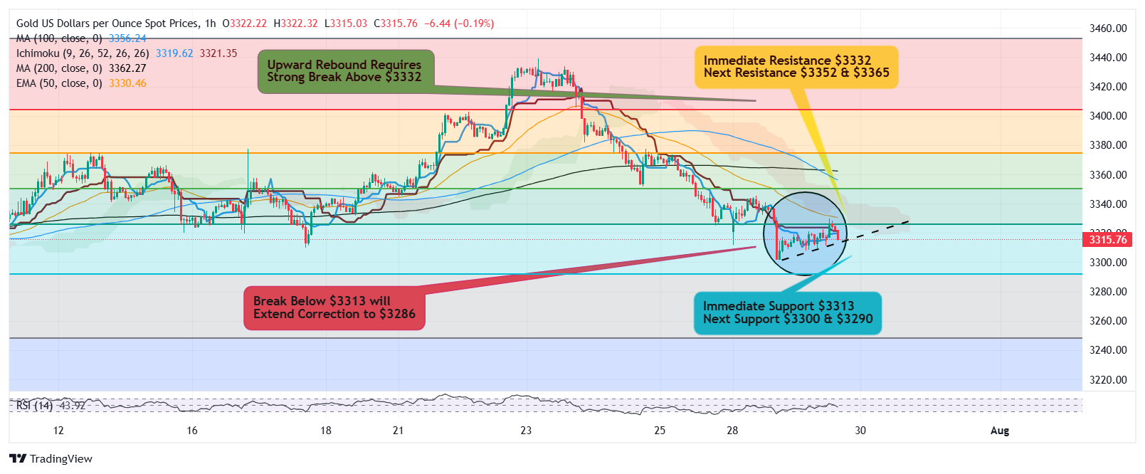 Gold extends correction to $3,300, rebound struggles at $3,332