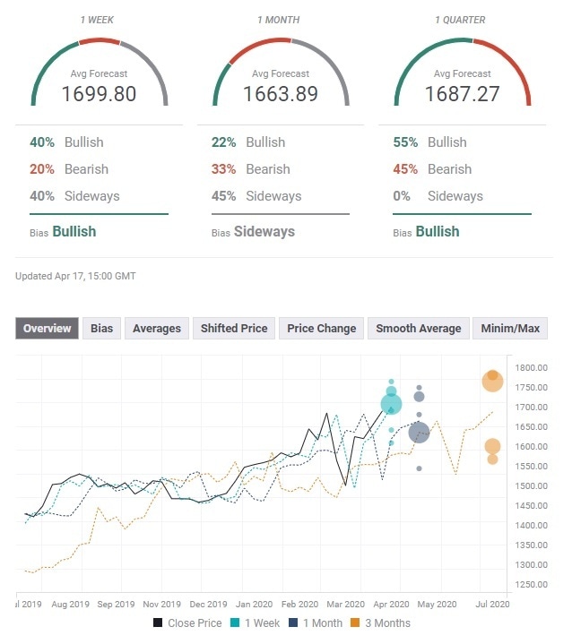 FXStreet's Forecast Poll shows that experts see a rebound toward the $1,700 handle next week. However, both the monthly and quarterly outlook show that the pair is likely to remain indecisive below that level.