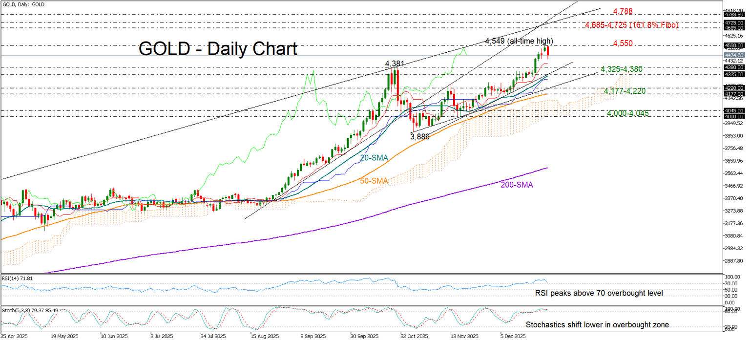Gold entered a corrective phase following a Christmas bullish stretch that lifted prices to a new all-time high of 4,449, as a face-to-face meeting between the U.S. President Donald Trump and Ukrainian leader Volodymyr Zelensky in Florida concluded on Sunday with hopes that a peace deal could be achievable, despite no clear details or timelines being provided.