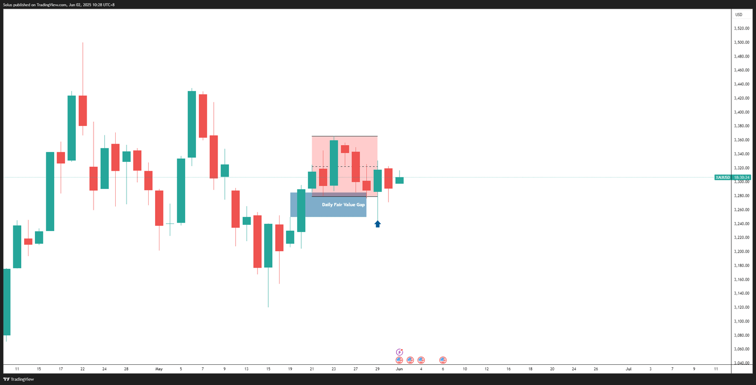 - Support holding: The 3250–3300 zone remains a strong demand area, where buyers have repeatedly stepped in.