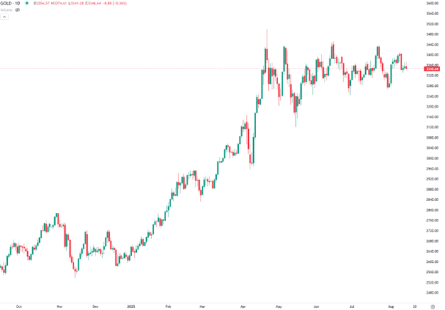Gold prices traded flat as the European session began on Thursday, with traders waiting for a clearer directional move. The precious metal is supported by a softer dollar, underpinned by the broad consensus that the Federal Reserve will cut interest rates in September — a view reinforced by lower-than-expected US consumer inflation data for July. However, increased risk appetite in the markets is diverting investment flows away from safe-haven assets such as gold and into risk-oriented ones like equities. This improvement in sentiment stems from hopes that Friday’s summit between Presidents Trump and Putin may pave the way for a ceasefire in Ukraine and a path towards ending the war. There is also optimism that a full-scale trade conflict between the US and China can be avoided, following the US administration’s decision to grant a three-month extension to the current trade truce. Against this backdrop, bullion prices are expected to remain close to current levels in the short term, with traders eyeing the release of US producer inflation figures later today, which are forecast to show a modest increase in costs.