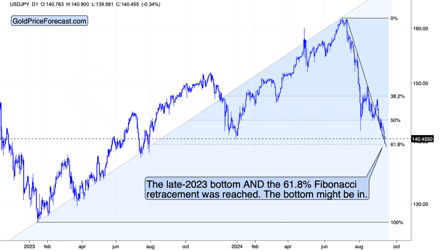 One more thing regarding the forex market. The USD/YEN currency pair – likely the most important for the precious metals sector – moved lower once again but reached a combination of support levels unheard of before (at least not recently).