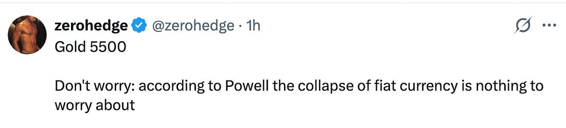 Gold is the inverse of confidence. When belief in policy coherence weakens, gold ceases to behave like a hedge and instead acts as an alternative. That is what we are watching now. This is not fear of recession. There is doubt about fiat stewardship.