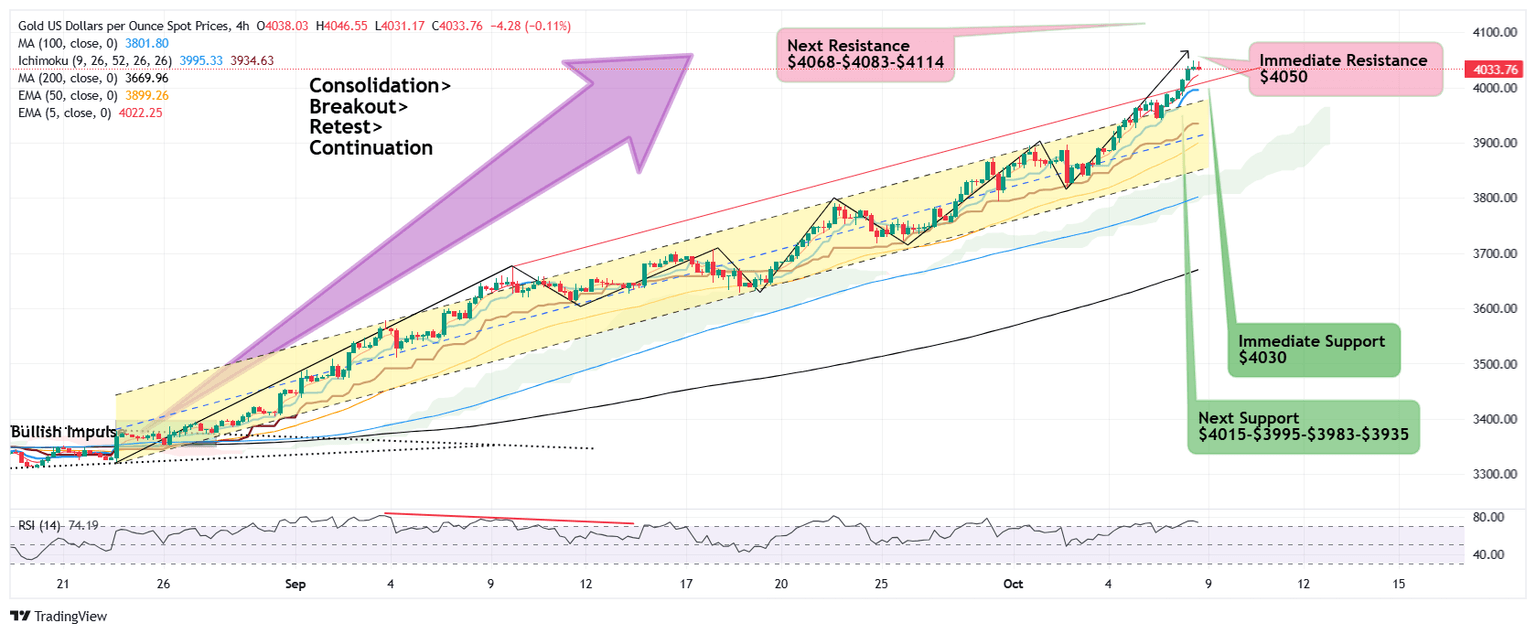 - Strong Bullish Rally Takes Gold to Historic High $4050.