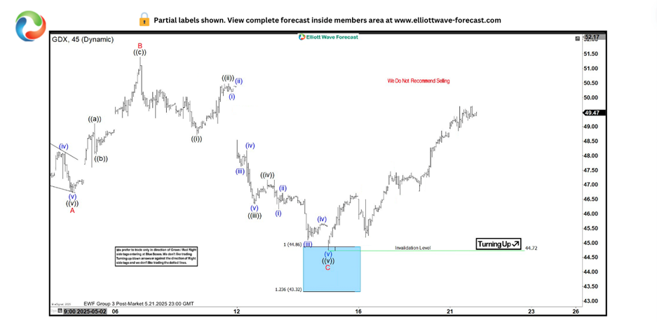 As our members know we have had many profitable trading setups recently. In this technical article, we are going to present another Elliott Wave trading setup we got in Gold Miners ETF GDX . The ETF completed its correction precisely at the Equal Legs zone, referred to as the Blue Box Area. In the following sections, we will delve into the specifics of the Elliott Wave pattern and explain trading setup.