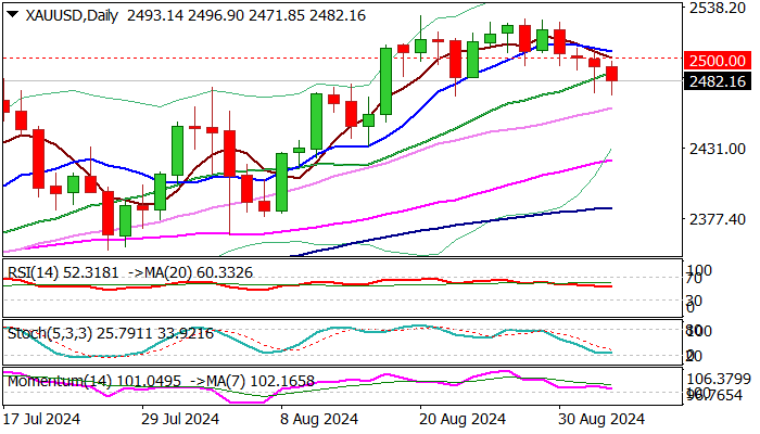 Gold price eased further on Wednesday, after loss of psychological $2500 support generated initial signal of potential deeper pullback.