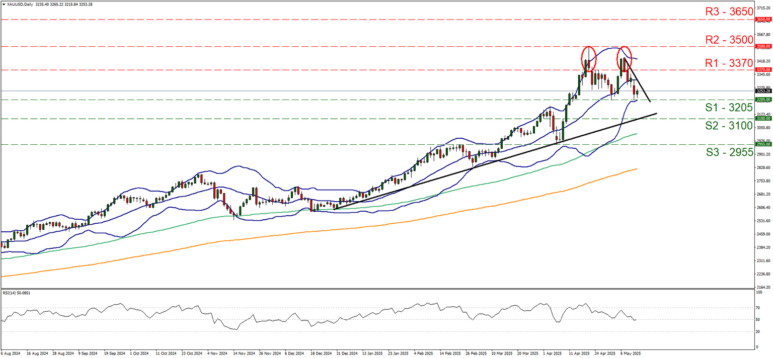 Overall we note an easing of tensions on a geopolitical level which tends to have a possible bearish effect on gold’s price. It’s characteristic that India and Pakistan have signed a truce which truth be told is rather uneasy, but in any case is a clear signal of de-escalation of the military conflict which was mentioned in last week’s report. Also Russia and Ukraine are preparing to start negotiations in Turkey, with Trump willing to join. Despite a resolution of the war in Ukraine is not expected, once again it’s a signal of de-escalation. In the Middle East, Trump is on a tour and we tend to speculate that he is trying to rekindle the Abraham accords, while the Palestinian Hamas has freed one American-Israeli hostage, also in a positive signal. Overall, should we see market worries for geopolitical tensions easing further, we may see such an easing having a bearish effect on gold given its safe haven status.