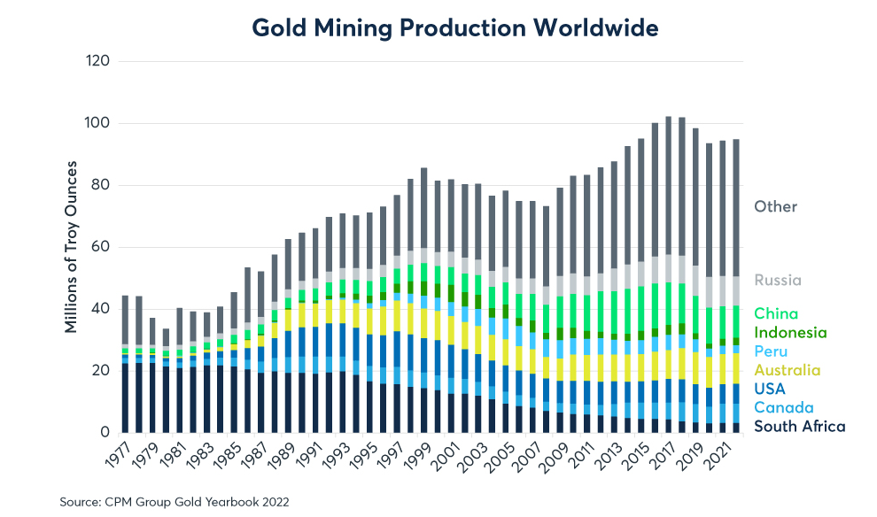 The output growth in the last couple of years has been below-average, at around 1.5% annually, and it would be surprising to see a significant increase in that figure giving record-high costs. Hence, supply-side dynamics, as they currently stand, look supportive of higher Gold prices in 2023.