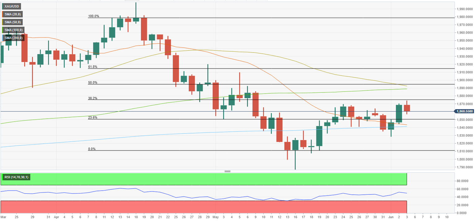 On the downside, $1,850 (Fibonacci 23.6% retracement) aligns as interim support before $1,840 (200-day SMA). In case the latter turns into resistance, this could be seen as a significant bearish development and attract sellers. In that scenario, additional losses toward $1,830 (June 1 low) could be witnessed.