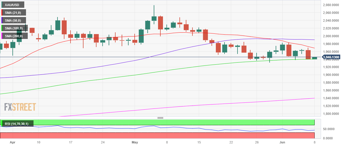 Gold price is attempting a bounce from near the $1,940 region early Thursday. Gold price shredded 1% in Wednesday’s trading after the US Treasury bond yields spiked on the surprise rate hike decision announced by the Bank of Canada (BoC), following a pause since March.