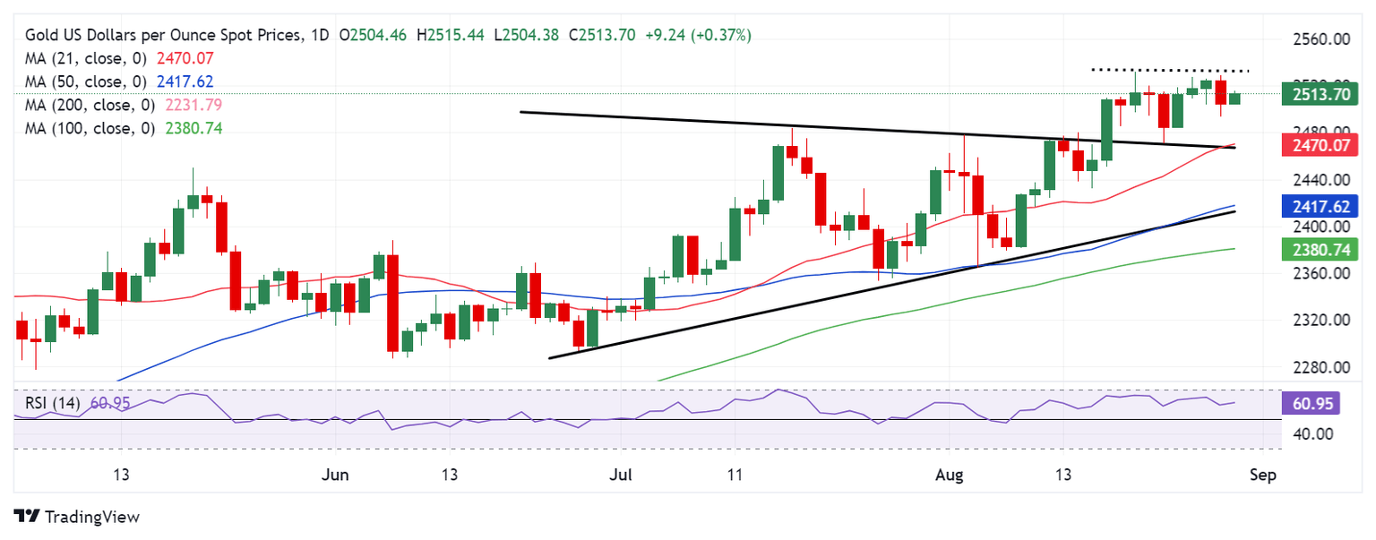 Gold buyers need to recapture the record high of $2,532 to take on the next key barrier at the $2,550 level.