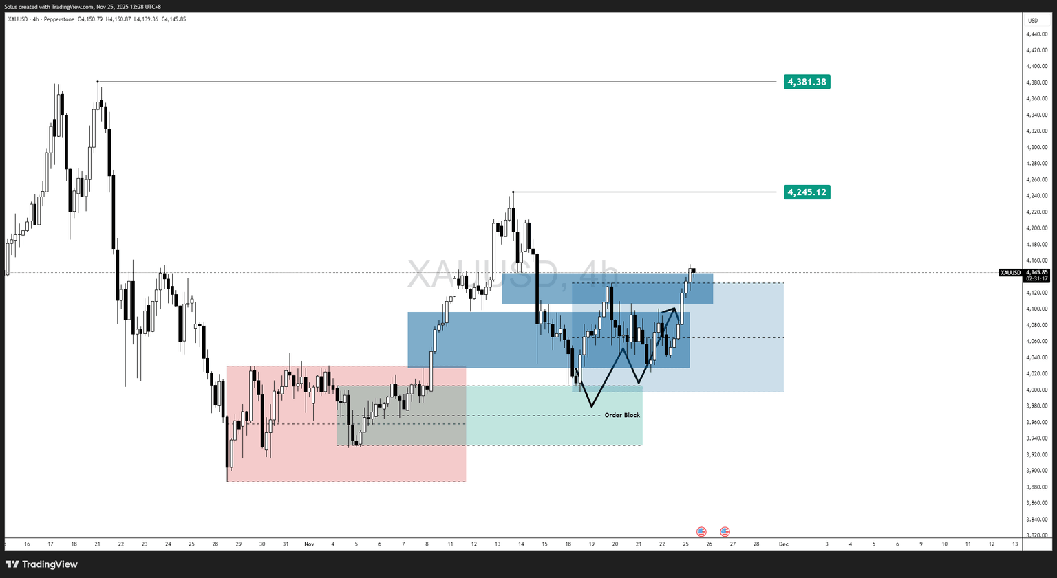 A decisive 4H close above $4,160 confirms that buyers have absorbed supply and signals continuation.