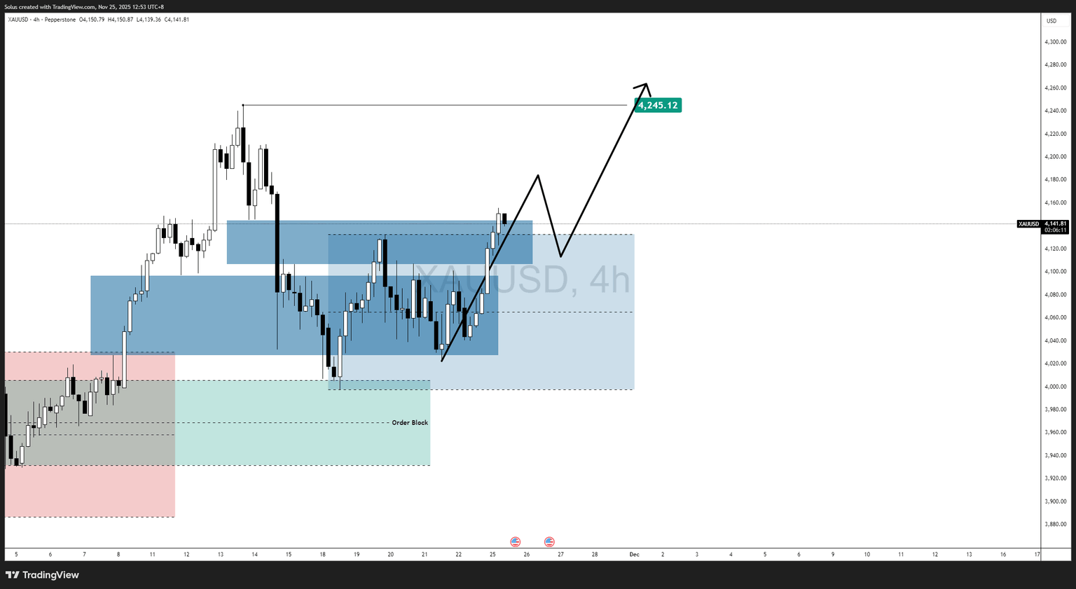 2. Controlled pullback into retest demand ($4,115–$4,135)