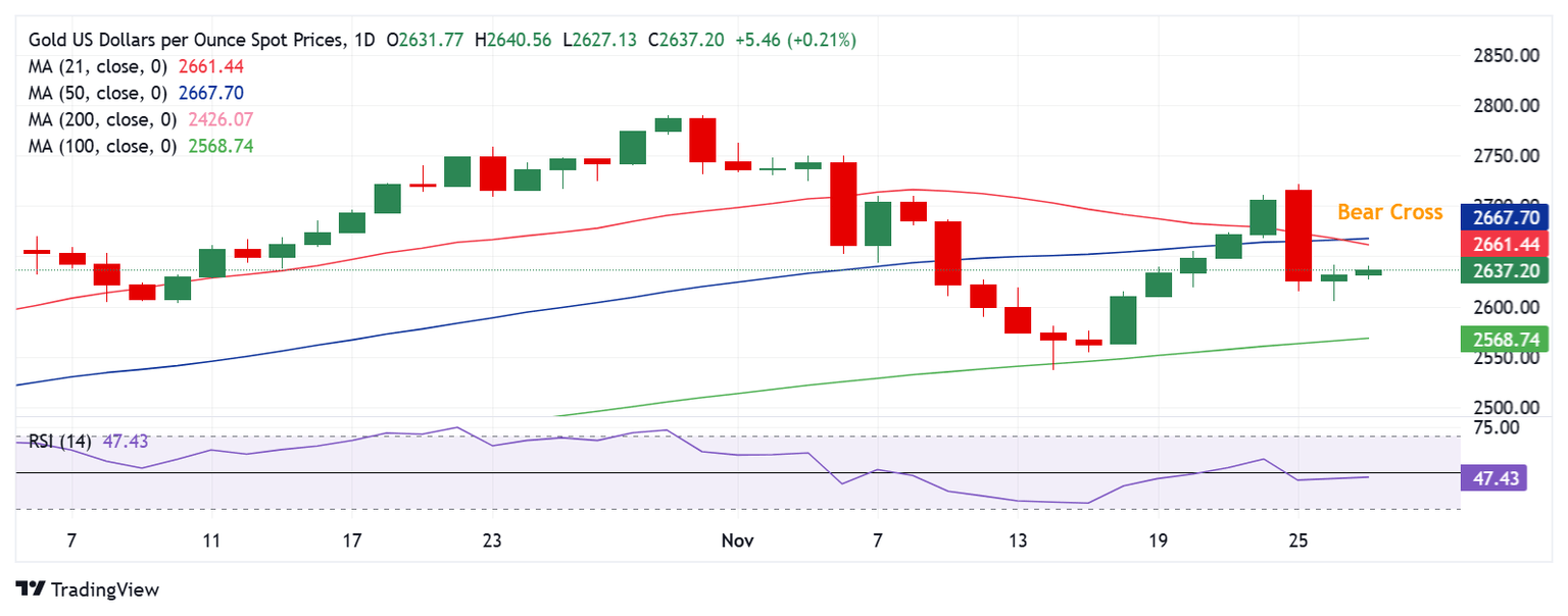 Gold price stays on the front foot in Asian trading on Wednesday, looking to extend the previous recovery from six-day lows of $2,605. Traders gear up for a slew of top-tier US economic data releases heading into the Thanksgiving holiday season.