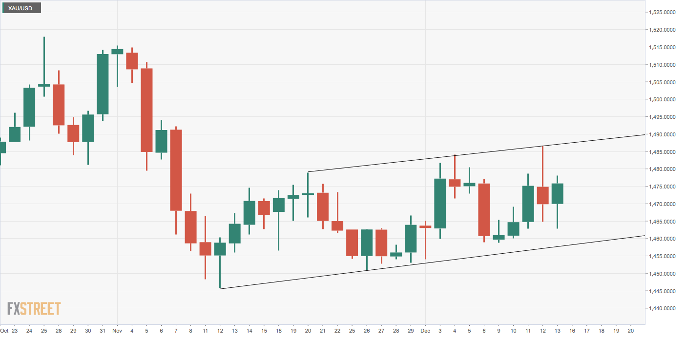 The outlook would turn bullish if and when the metal confirms a falling channel breakout. That would imply a resumption of the rally from lows near $1,270 registered in May and open the doors for a retest of the 2019 high of $1,557 reached in September. The channel resistance would be located at $1,488 next week.