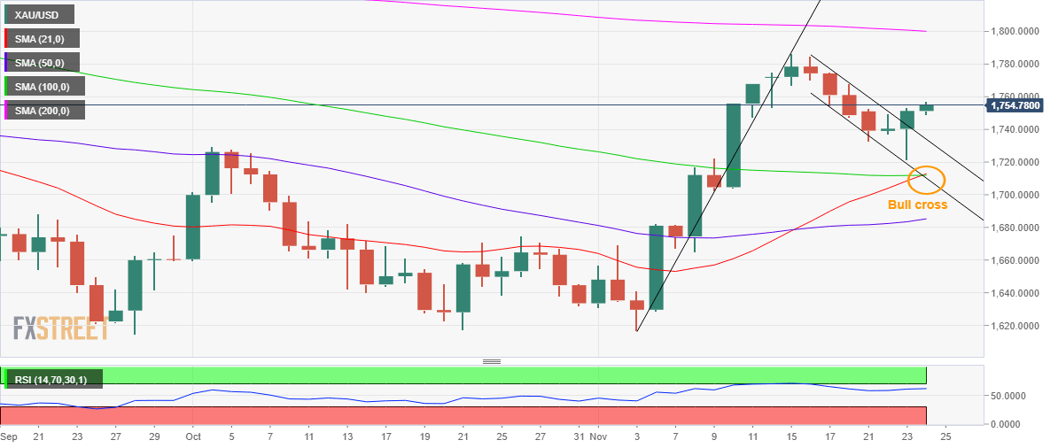 Gold price is rejoicing fresh bids above the $1,750 psychological level in what seems to be another down day for the United States Dollar (USD). Investors are likely to hold the recent upside in Gold price amid holiday-thinned light trading conditions on account of Thanksgiving Day in the United States this Thursday.